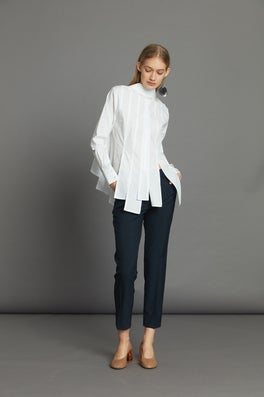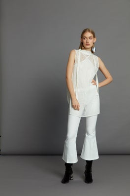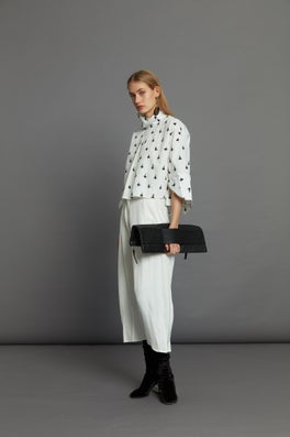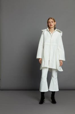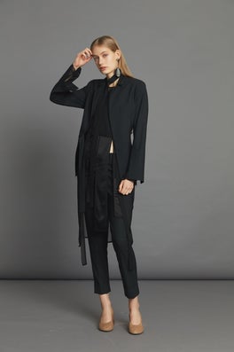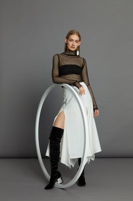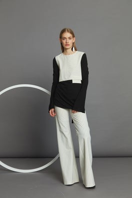 Echo. Repetition. Order. The Autumn/Winter 2017 collection from taylor - 'Distant Latitudes' - draws inspiration from the minimal beauty found in recurring patterns. The circular and rectangular shapes created by entrances to tunnels, with curves that dissect flat planes and gradually diminish to a vanishing point, and the engineered beams and filtered lights that flicker and repeat as you pass through. The echoing effects and disruption to sound waves as they bounce around confined spaces.