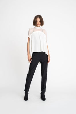 Inspired by the relationship of misaligned objects and how they interact with other forms, our taylor Autumn Winter 19 collection 'Kilter’ is designed to transition you through the seasons and into the cooler winter months with ease. With inspiration taken from artists such as Jan Van Munster and Anthony McCall, the collection plays strongly with shape and texture. Graphic architectural lines are slightly offset and cut into flowing silk fabrications while discreet darting creates unexpected